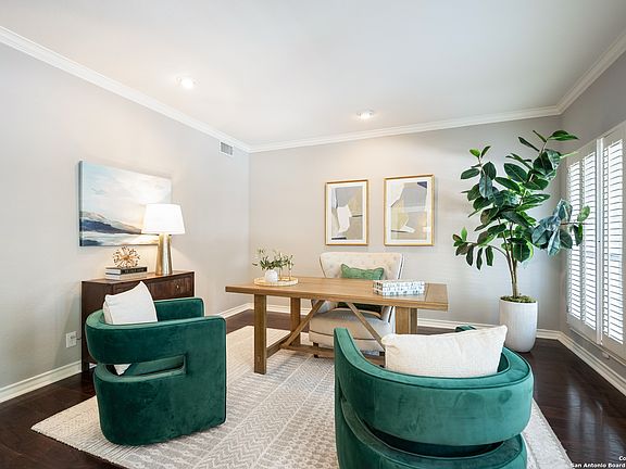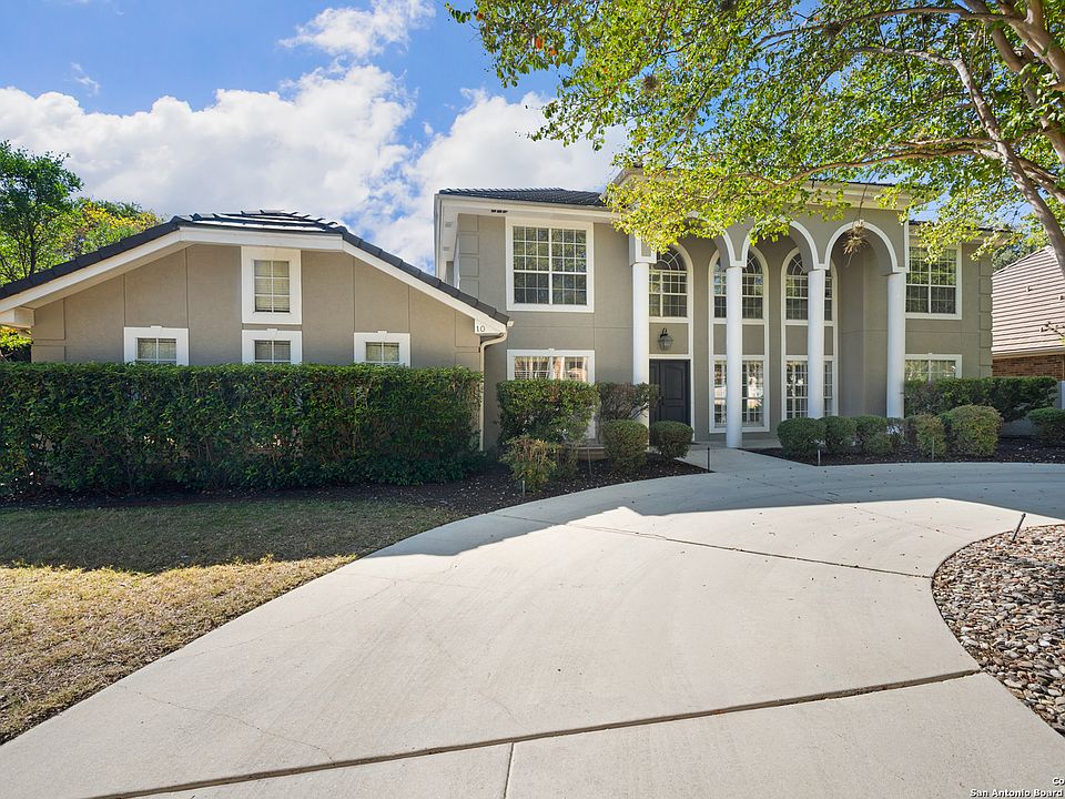 Beautifully appointed two-story residence in the highly sought-after, guard gated Oakwell Farms community. Set on a generous estate size lot that backs to the peaceful greenbelt walking trails, this home offers privacy, presence, and exceptional outdoor living. The spacious layout features formal living and dining rooms that elevate entertaining, along with an inviting family room anchored by a cozy fireplace. The kitchen opens to the breakfast area and overlooks the backyard, making everyday living effortless and connected. The primary suite is thoughtfully located on the main level and includes a sitting area, a large walk-in closet, and a serene bath retreat. Upstairs are three well-sized secondary bedrooms, a study which could double as a bedroom and a game room, providing flexibility for study spaces, play, workouts, or multi-generational living. Outdoor living is the highlight here-a sparkling luxury pool, mature landscaping, and direct access to the neighborhood walking trails create a backyard oasis that feels both private and refreshing. A three-car garage adds convenience and storage, and the home is positioned on one of the most desirable, tree-lined streets in Oakwell Farms. This is the space, setting, and lifestyle so many buyers wait for. Location within San Antonio is ideal, minutes to 410, 35, the airport and Fort Sam Houston.