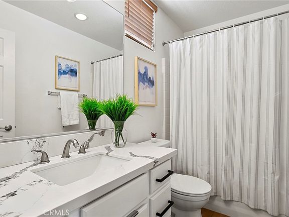 Welcome home to your beautiful AND GREEN detached 3 bedroom, 3.5 bath home. This home features luxury vinyl flooring throughout, remodeled kitchen and bathrooms, updated light fixtures and OWNED SOLAR PANELS! On the first level you have a large ensuite bedroom & bath with its own private patio area, perfect for a guest room or office. The laundry, storage, and garage access are also on the first level. The main living area is located on the second level. You’ll enjoy the light and bright open family room with fireplace & formal dining area open to the outdoor patio, perfect for entertaining and BBQ. The kitchen has been remodeled with quartz countertops, stainless steel appliances, a farmhouse sink, has a separate dining nook, and enjoys views of the hills. Conveniently, there is a half bath located on the second level, perfect for guests. The third level has the primary bedroom and one secondary bedroom. The primary suite is spacious and the bathroom nicely remodeled. The secondary bedroom is a good size as well and also has its own bathroom. There is even a spacious landing area perfect for an office. Located in the highly sought-after Terramor Village of Ladera Ranch, this property is zoned for the award-winning Oso Grande Elementary School and offers easy access to an array of fantastic community amenities, including pools, a water park, a skate park, trails, and more. Don’t miss your opportunity to own this remarkable home—it won’t last long!