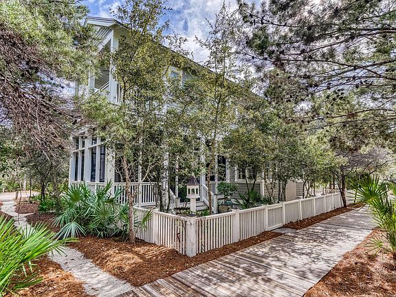 Wonderful 5 BR, 5.5 BA decorator's own home! Situated on a larger corner lot, it affords privacy sitting on Green Space on Puttering Park in Watersound Beach. In addition to the east and south sides being protected by the private streets, it is bordered on the north by a park, and on the west by a small sandy path. Upon entering from the back door or front door, one is greeted by soaring 12 ft. ceilings and shiplap walls. In addition, there are beautiful wide plank floors in the entire downstairs, as well as rustic beams in the living and dining areas. The gourmet kitchen boasts the finest Wolf appliances, a Bosch dishwasher and gorgeous granite counter tops. The Comfortable Open Floor Plan invites all who gather to make wonderful memories at the Beach! It is a True Nantucket Style Home!