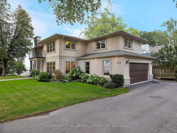 Situated along the shores of Lake Ontario sits this perfectly situated non-riparian lakefront property in the heart of Bronte. With just over 3,000 square feet of living space above grade, plus a fully finished walk-out basement, this home is flooded with natural light and views of the water from almost every single room. The updated kitchen features stylish two-tone cabinetry, high-end appliances and an oversized island. The kitchen overlooks both the breakfast area, with built-in bench seating, as well as the oversized great room with gas fireplace. A large formal dining room is found off the foyer with built-in China cabinet and beautiful corner windows. A main floor laundry room, powder room and inside access to the attached double car garage complete this space. The primary suite has an open concept design and is located across the front of the home to take advantage of the beautiful views. Step out to your private balcony, the perfect space to watch the sunrise. The ensuite features double sinks with plenty of storage, stand-alone soaker tub, water closet and large walk-in closet with custom organizers. In addition, there are three other bedrooms, all generous in size and with views of the lake, along with two additional bathrooms. The walk-out lower level of this home, with French door and oversized windows, allows this space to not feel like a basement, but rather an extension of the upper levels. Here you will find a large recreation room, home office and full bathroom. Decks and balconies are found on every level of this home to really take advantage of enjoying the views. Walking distance to all that Bronte has to offer and located down a quiet lane, this is a rare opportunity to live on the lake in a perfect lifestyle home.