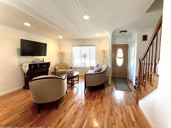 This is the one you've been waiting for! Welcome to this exquisitely upgraded, 3 bedroom, 3 bathroom extra-wide, semi-attached home on a 3,300sq ft lot located in highly sought after Annadale, convenient to all. Entry floor has gleaming hardwood from entry through to the living room and dining room, while the spacious and sunny kitchen, at the rear of the home, has a tiled floor and plenty of granite countertops, including a generously sized granite-topped-island, convenient for sitting, serving, preparing, and storing, all lined with ample cabinets, a large pantry, and a newer refrigerator. Rear sliders to tremendous yard makes for easy entertaining for large gatherings or just relax in the sun or under the retractable awning while enjoying seasonal fresh figs, right from your own yard. Entry floor half-bath is newly renovated with stunning tile from floor to ceiling. All this in a freshly painted package topped with new crown molding which extends to and through the second floor where you are greeted by a newly renovated, full bathroom, beautifully tiled floor to ceiling. Rejuvenate in these three generously sized bedrooms. Primary and second bedroom offer two full-sized closets in each with the perk of the primary bedroom featuring a small ''walk-in'' closet, and of course, a full-sized closet in the third bedroom. Pull down attic stairs for additional storage. This home also has a full and finished, fully tiled basement, with a fully tiled 3/4 bath, utility closet with washer/dryer which stay; and tremendous storage closet. This space is perfect for movie night at home or large gatherings and celebrations. Gas furnace maintained annually; three new wall unit air conditioners; multi-zone forced hot air heat. Easy conversion to central a/c, as ductwork is already present and recently cleaned! Plentiful recessed lighting throughout the home. Large and attractive storage shed. What more could one desire? Pack your belongings and move right in!
