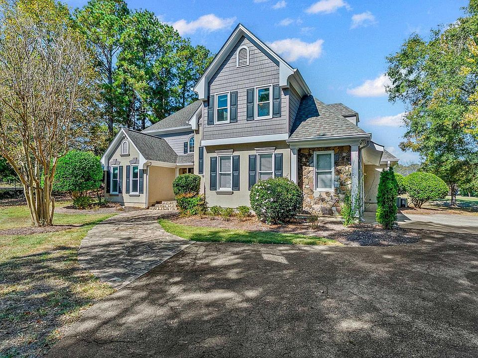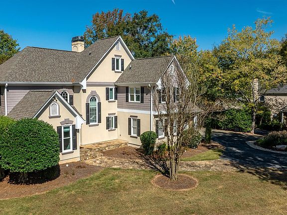 Experience country club living at its finest in this stunning European-style home, perfectly positioned on a private wooded lot overlooking both the 14th green and the 15th fairway of the prestigious Carolina Country Club. Tucked away on a quiet cul-de-sac behind a 200-foot private driveway, this exceptional residence offers a rare blend of privacy, modern luxury, and sweeping golf course views from nearly every room. Set on .79 acres, the home’s setting is as impressive as its design—mature landscaping, upgraded grass, and a new fire pit create the perfect backdrop for outdoor living. Step through the new Mediterranean Brazilian mahogany front door and you’ll immediately notice the attention to detail. The main level features new wide-plank hardwood floors, soaring ceilings, and two inviting living areas, including a great room with a wood-burning fireplace, built-in bookcases, and double French doors opening to one of two stone patios overlooking the course. The heart of the home is the fully renovated chef’s kitchen, showcasing quartz countertops, matching slab quartz backsplashes, warm greige cabinetry, and high-end GE Profile stainless appliances—including a gas range, wall oven, and microwave. A sunny breakfast nook with golf views opens to the patio, perfect for morning coffee or evening gatherings. The main-level primary suite offers the ultimate retreat, complete with a private sitting area and gas fireplace, a large cedar-lined walk-in closet, and a luxurious bath featuring a vaulted wood ceiling, dual vanities, and an oversized glass shower with multiple showerheads and body sprays. A spacious laundry/office area is also conveniently located on this level. Upstairs, you’ll find three additional bedrooms, each with walk-in closets and direct bath access—including a Jack-and-Jill layout—plus a large bonus room ideal for a playroom, home gym, or office. Additional storage and custom built-ins enhance functionality throughout. The home has been meticulously updated, with nearly $140,000 in recent improvements that include a new HVAC system (2023), new windows with a lifetime warranty, instant hot water booster, Wi-Fi controlled Rain Bird irrigation system, upgraded landscaping, and a convenient circular driveway with ample parking. Located just moments from the clubhouse, residents can enjoy gated security and member-only amenities, including championship golf, tennis, pickleball, swimming, fitness, and both formal and casual dining. With every detail thoughtfully designed for elegance, comfort, and privacy, this Carolina Country Club masterpiece is more than a home—it’s a lifestyle. Schedule your private showing today and experience golf course living at its absolute best.