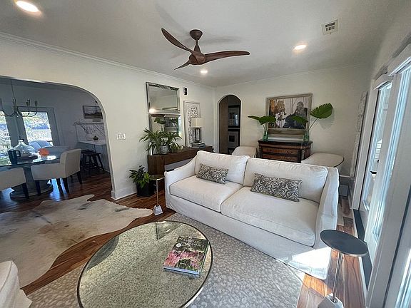 Inside, the home showcases designer touches throughout, from arched doorways and custom millwork to new hardwood flooring and fresh, elegant paint selections. The fully renovated kitchen is a true showpiece, featuring marble countertops, premium new appliances, including a refrigerator, dishwasher, and range, and thoughtfully curated finishes that balance modern luxury with classic style.