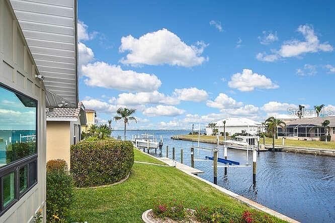 PUNTA GORDA ISLES – LOCATION! LOCATION! LOCATION! A Boater’s Dream – Just Three Lots from Charlotte Harbor & the Gulf of Mexico! Discover coastal luxury at its finest in this Punta Gorda Isles masterpiece—only three lots from open water with NO BRIDGES to the Gulf! Whether you’re a sailor or a powerboat enthusiast, you’ll enjoy direct access to world-class boating and fishing right from your own backyard dock in one of Florida’s most coveted waterfront communities. FULLY REMODELED in 2016, this 2,731 sq. ft. custom home features timeless French-Pattern TRAVERTINE flooring, elegant finishes, and modern updates throughout. The open-concept floor plan was designed for effortless entertaining, featuring a soaring vaulted great room, an inviting electric fireplace, and HURRICANE IMPACT WINDOWS AND SLIDERS that bathe the home in natural light while offering peace of mind. The GOURMET kitchen will delight even the most discerning chef, showcasing Bosch stainless steel appliances, an induction cooktop island, custom cabinetry, and a seamless connection to the expansive dining area with built-ins for ample storage. The primary suite is a true retreat, offering an expansive layout, custom mirrored built-ins, DUAL WALK-IN CLOSETS, and a SPA-INSPIRED master bath with dual vanities and a luxurious walk-through shower. Guests will enjoy their own private suite with a modern bath, while a third bedroom (currently an office/den) provides a SPECTACULAR VIEW OF CHARLOTTE HARBOR and direct access to the lanai and pool area. Step outside into your tropical oasis, where a screened, heated saltwater pool awaits. Surrounded by elegant travertine pavers and “picture frame” screens, the space perfectly showcases postcard-worthy Harbor views. An outdoor shower completes the luxurious, spa-like experience.The 85' seawall and 50' concrete dock are equipped with water, power, and TWO BOAT LIFTS, one 16,000 lbs and one 4,500 lbs, ready for your vessels. Additional highlights include: In ground 250 gallon propane tank to power the 24kW Generac WHOLE-HOUSE GENERATOR 2022, with automatic switchover, Dual-zone TRANE AC 2016, IMPACT Windows and Doors, Solid wood interior doors, Plantation Shutters & Crown Molding, Air-conditioned 2-car garage with epoxy floor (2025) and TV, RainSoft water softener plus kitchen reverse osmosis system, Exterior painted 2022 & lush, mature landscaping, furniture is included. plumbing redone up and over in 2016. Just minutes to historic downtown Punta Gorda’s boutiques, dining, and entertainment, this home offers the perfect balance of luxury, location, and lifestyle. This home is being sold partially furnished, as shown, less personal articles. Move-in ready, impeccably maintained, and built for those who demand the best in coastal living.