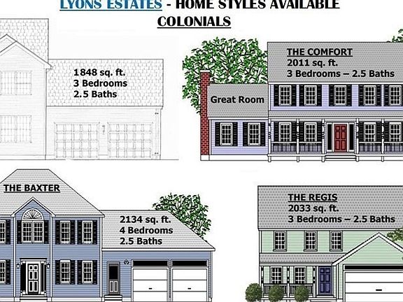 NEW CONSTRUCTION: WELCOME TO LYONS ESTATES. THE AREAS MOST PREMIERE SUBDIVISION. 18 LOTS TO CHOOSE FROM. CURRENTLY TAKING LOT RESERVATIONS FOR A FALL 2020 CONSTRUCTION START. Several home plans in varying sizes to choose from - Ranches, Colonials, and Splits. Prices start at $419,900 for ranch style and up depending upon lot choice. The builder is an award winning local builder and the past President of the Builders Association. He has been building homes for over 30 years and has built many styles from small ranches to large custom colonials. All our homes are stick built, energy efficient homes to include new wool blown in insulation, propane fired hot air system with central air conditioning, low E glass windows, solid core interior doors, vinyl siding with maintenance free AZEK trim, 30 year architectural shingles as well as granite counter tops, hardwood floors in the kitchen and dining, tile floors in baths and many other quality features. PLEASE CALL TODAY FOR MORE DETAILS.