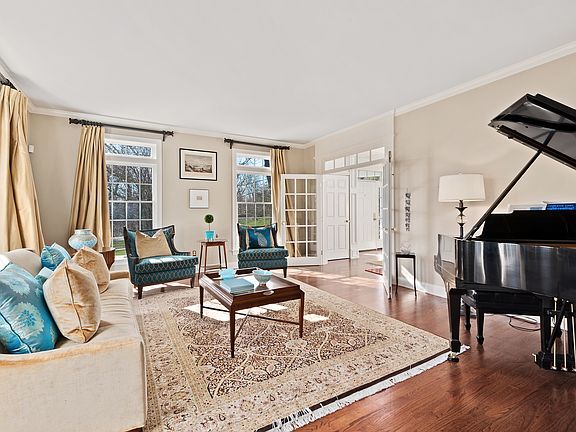 Rarely available in prestigious Hardscrabble Lake this Center Hall Colonial is introduced by a gentle sweeping driveway on a premier street in the Chappaqua School District. 10 Turtleback is one of the few properties that has such a private, large and level flat backyard in this high-end community. Features include an oversized bluestone patio perfect for entertaining, full house generator and scenic views all beautifully landscaped w/ irrigation. The interior boasts a two-story entry hall, large living and dining rooms, extensive millwork, arched doorways and gleaming hw floors. The beautifully appointed eat in kitchen features a separate oversized fridge and freezer complemented by a wine fridge in the butler's pantry. The 2nd floor has 5 generously proportioned, light-filled rooms and the master bedroom is a retreat of its own with tray ceiling, 2 walk in closets and en-suite bath. The lower level features a playhouse, stage, gym, full bath and wine and party room. Low taxes, too!