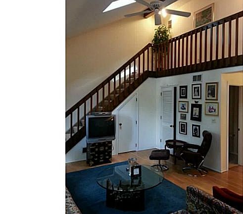 Desirable end unit. Cathedral ceiling with skylight. Attached garage. Private deck overlooking wooded setting. Convenient to town center. UPDATE - Furnace replaced in 2017 and water heater in 2018