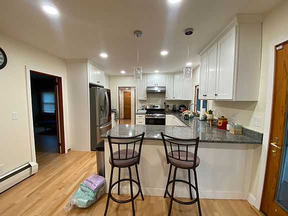 WINTER RENTAL - OCT through MAY. Beautifully updated home with gleaming hardwood floors throughout, well-equipped kitchen, gas stove, granite countertops, stainless steel appliances. Open floor plan to dining area and living room with large wood-burning fireplace and built-in bookcases for all your favorite reads! Also on the first level is a separate entry foyer, a half bath and large den or possible first-floor bedroom also with built-in shelving and drawer/cabinet space. On the 2nd floor you'll find 3 nicely sized bedrooms plus a 4th large room currently used as the master bedroom. The 2nd floor also has 2 full bathrooms - one with a shower and the other with a tub/shower. Enjoy the peacefulness of the huge outdoor deck surrounded by large trees for privacy. This property also has a fenced-in yard, one-car garage and an enormous, finished basement with space for kids to run & play, daily workouts, a separate area for laundry machines, extra office space or your latest hobby and a storage/utility room! Located across Hope St. from the expansive seaside Colt State Park and a public beach - what could be better?! This property is completely FURNISHED. Gas heat, solar panels, connected water and sewer, window AC units available. Trash removal is PAID for by owner. This spacious home is charming and oh sooo comfortable and inviting! Make it your next home today!