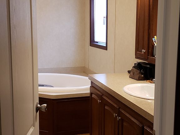 Master bedroom 15x12 Regular closet and walk in closet Master bath with standing shower and a garden tub with linen storage Bedroom 2 & 3 are 10x10 with new hardwood floors Has a utility room for washer/dryer Living room 18x12 Kitchen with island- comes with oven, stove top microwave, refrigerator, and dishwasher(never used) We put up a wall between the kitchen and dining room and used it as a bedroom, but is now a school room/office. This space is 7x12 2 car newly paved driveway added side deck, built in 2017, is moveable Home is in Valley Stream Community. New owners would have to pass credit and background checks to live in the community. Crestwood school district