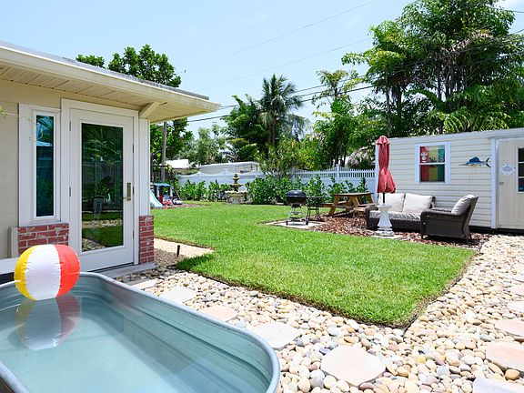 Absolutely charming, this updated home is located in the highly desirable Riverside Park neighborhood. Set on a large, private lot with room for a pool--and space to bring your flats boat or small RV--this property blends timeless character with thoughtful, modern upgrades. A $16,000 investment in all-new landscaping enhances the exterior, complemented by a tongue-and-groove front porch ceiling and new columns that elevate curb appeal. Modern kitchen featuring quartz countertops and GE stainless steel appliances. The open layout flows from the kitchen's counter bar into the living area, accented by built-in bookcases. Terrazzo floors run throughout, with ceramic wood-look tile in the family room, and a mosaic tile marble floor with a marble-topped vanity in the bathroom Additional highlights include a new metal roof (2017), impact windows and doors (2020), updated electrical panel, tankless water heater, new A/C (2022), new insulation (2023). Two blocks to the Loxahatchee River where you can kayak, paddle board and more. Just minutes from beaches, parks, shopping, and dining, this home offers the perfect blend of comfort, style, and location. A must-see!