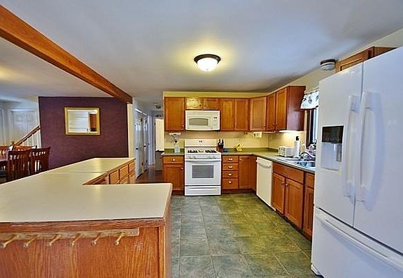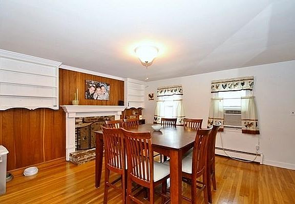 Your search has ended! Beautifully Maintained, newly painted 4 bed/2 bath Cape! Walk into the sun filled living room with beautiful cathedral ceilings, recessed lights and slider leading you out to the deck! Kitchen offers ample cabinet and countertop space. Formal dining room complete with gleaming HW floors and fireplace - great place for entertaining! Tons of natural light throughout! Master bedroom features wall to wall carpet & large closet! You will find 3 additional spacious bedrooms all with plush W2W carpet. Partially finished lower level provides additional living space! Step outside to your backyard oasis featuring fenced in yard, complete with large deck, swing set and above ground pool! Exterior features also include storage shed and paved driveway offering lots of parking. Close to shops, restaurants & short distance to Commuter Rail! Don't miss out, see it today!