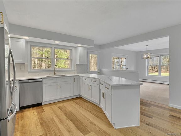 Welcome to 10 Victorian Woods Lane-a beautifully updated stand-alone PUD in one of South Windsor's most convenient locations. This move-in ready home features a brand-new roof, all new flooring, fresh interior paint, and updated bathroom vanities throughout. The stunning renovated kitchen showcases stainless steel appliances, quartz countertops, a full quartz backsplash, and elegant brushed-gold hardware that gives the space a modern, upscale feel. Enjoy the rare benefit of an attached 2-car garage, plus a spacious back deck perfect for relaxing or entertaining. The $136 HOA fee makes this property an exceptional value, offering the privacy of a single-family home with the convenience of maintenance-friendly living. Set in a desirable, well-kept community close to shopping, restaurants, Buckland Hills, Evergreen Walk, and major highways-this is the turnkey South Windsor home you've been waiting for. Don't miss it! Agent is owner.