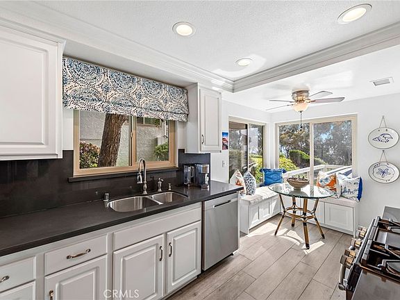Enjoy ocean views from this spectacular, end unit townhome located within a highly desirable beach community in San Clemente. The kitchen has been remodeled to include a custom built in breakfast nook, stainless steel appliances, Quartz countertops and oak style flooring. Also on the main level you will find a bedroom, 3/4 bathroom and the formal dining room which overlooks the living room a few steps below. Featuring vaulted ceilings, a gas fireplace and an abundance of natural light, the living room will provide the comfort you've been looking for. Step outside to your private, enclosed patio and sit back and relax while taking in your new ocean view. Upstairs you will find two additional bedrooms including the master which showcases an ocean view through the large windows with plantation shutters. Featuring gold hardware, black ascents, designer lighting and tile extending over the walls, the three bathrooms in the home are simply a work of art. Other property features include a direct entry two car garage, newly installed air conditioning and interior laundry. The coastal Seaview townhome community includes a pool, spa, tennis court and ample guest parking. Walk or bike to downtown San Clemente and enjoy the many restaurants and shops, all just moments from several world class beaches.