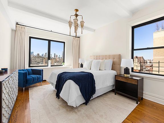 Perched on a high floor with open city views, this elegant and beautiful home has it all. Enter this 3-bedroom, 3-bath apartment through a lovely entry gallery leading into a spacious living room with spectacular south facing city views. The adjacent gracious dining room has the same wonderful views and leads into the windowed kitchen. The modern kitchen boasts wood cabinets, granite counter-top, a Thermador Professional gas range, and Miele dishwasher. In-unit washer/dryer. The corner master bedroom has enormous tilt and turn windows with outstanding city views south and west, a huge walk in custom closet and a windowed, stone tiled master bath. The sunny west facing 2nd bedroom also has an en-suite windowed bath and great closet space. The 3rd bedroom off the dining room with a renovated windowed full bath, is currently configured as a sublime home office. This elegant home has over 9-foot beamed ceilings, hardwood floors, picture moldings, washer dryer, and windows in every room. Right near Central Park and the Reservoir, 10 West 86th is a boutique co-op with only 30 apartments, a live in super, full-time doorman, bike room, and 2 apartments per floor. Sorry, no dogs.
