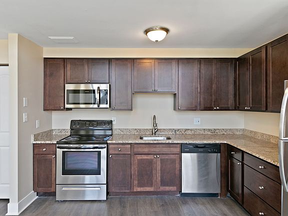 Goose-neck pull-out faucetsSpacious light-filled apartment homesHigh ceilingsGranite counter topsDesigner plank flooringStainless steel appliances
