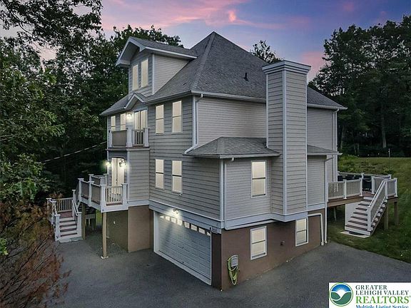 Discover this Stunning CUSTOM built 4 Bedroom, 3.5 Bath TURN-KEY Pocono Home which was designed to check every box on your list! The gourmet kitchen boasts granite countertops, stainless steel appliances, breakfast bar and a stylish tile backsplash. Spacious dining area with rear glass sliders open to a large composite deck which includes propane fire pit table perfect for enjoying a morning coffee. Back yard boasts of wood fire pit, 8 person Hot Tub, and plenty of space for outdoor games. Enjoy engineered hardwood flooring throughout the main floor and the comfort of double-zoned forced air heat and central AC. The open-concept layout flows seamlessly into spacious living areas, while the oversized attached garage adds convenience. Retreat to the Primary Suite, complete with a private balcony, upgraded shower and soaking tub. Three additional large bedrooms and full bath are located on the same floor as the primary suite. Upstairs, a generous bonus room provides extra space for guests, a home office, or whatever you envision. The finished lower level is a perfect entertaining space with media room, game space and offers propane stove to keep you warm on the cold winter nights. Ideally located just minutes from I-476, I-80, historic Jim Thorpe, outdoor adventures, and all major Pocono attractions—this home offers the best of mountain living with modern comfort along with being an income producing Short Term Rental for anyone thinking of INVESTING.