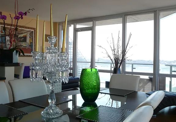 The most coveted line in the building featuring corner living room with dual North and West exposure and a balcony. Enjoy breathtaking views and sunsets every night. Designed to the highest standards of finest modern design, the apartment offers the following features: * Custom-built lighting fixtures * Elegant door moldings * Custom-built closets * Bosch washer/dryer * Imported Pianeta Legno Aformosia wood floors * Floor-to-ceiling glass windows and high ceilings * Custom-designed open kitchen * White oak and etched glass cabinets * Jet Mist granite countertops & Veneto glass backsplash * Sub-Zero stainless steel refrigerator * Bosch dishwasher * Gas cook top * Viking stainless steel convection oven * Central air throughout * Large walk-in closet * En-suite Master bathroom featuring Vena Oro marble walls, Polished Siberia marble slab floors and American walnut custom vanity with his and her vanity/sinks; * In unit washer/dryer Amenities at 10 West End Avenue include: * Full service 24-hour doorman/concierge service * On-site parking garage with valet service * Bicycle room * Temperature-controlled grocery storage * Children's activity center / playroom * State of the art fitness center * Stunning 50-foot glass enclosed pool with Pompeii Stone and white quartzite walls * Laundry Service 10 West End Avenue offers exquisite living amidst the finest restaurants, shops, parks and entertainment venues in New York. Located steps away from Lincoln Center, Columbus Circle, Central Park and the Hudson River Greenway. This rarely-available fully-equipped corner unit on the 27th floor has partial Hudson River views. Apartment has over 75 square feet of private outdoor space in the form of your own personal balcony comfortable for both sitting and lounging.