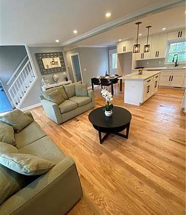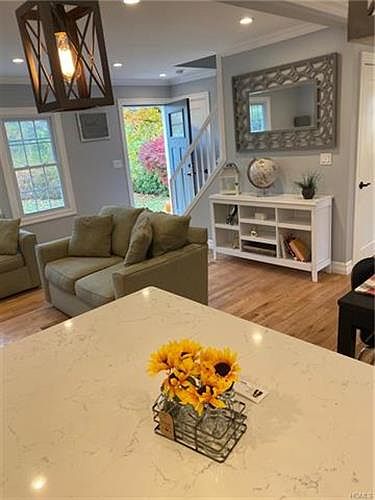 Completely renovated charming cape cod in the sought after Valhalla! New roof w 25 yr warranty, new siding, new windows, new hvac system w central air, new hot water heater, refinished hardwood floors, you name it, it's new! Beautiful white kitchen with shaker cabinets, quartz countertops and large island w open concept flow to living room. Also large enough to fit a dining table. Both bathrooms have porcelain tile. On first floor there is also 2 great sized bedrooms... no steps to get to! Upstairs you will find 2 large bedrooms and another beautiful bath. Basement is finished and walkout making for a great playroom or family room. Backyard is flat, large, and private. One car garage and long driveway that fits 6 cars. Owner is providing credit for appliances so buyers can choose their own. Floors will be finished prior to closing. Taxes don't reflect star deduction.