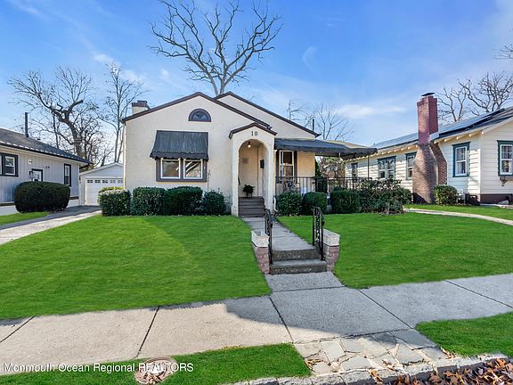No. 10 Wardell Pl, with its charming Spanish-inspired style and warm appeal, has all the right attributes. The lovely ranch is situated on a wonderful street and has pretty bright sunlit exposures within, a cozy woodburning fireplace, and fashioned mahogany inlay wood and tiled flooring. And appreciatively a convenient cellar, scuttle attic, divine awninged front porch with decorative wrought iron stair railings, alfresco patio, backyard, valuable detached garage, and a lengthy home-crafted slate driveway. Living in Wanamassa is a unique experience. Although the town is tiny, it does have all the amenities and attractions of a larger city. Nearby is Asbury Park, which offers a variety of exciting activities year-round, including beach days and boardwalk strolls to unique restaurants and shops. A tightly knit, comfortable residential area has a firmly established community feel. The area is a treasure trove of historical sites. With its blend of history, natural beauty, and modern conveniences, it is an attractive place to live in Monmouth County and has a variety of parks, trails, a historic township owned Golf-Course and other outdoor recreation areas. The area is shaped significantly by The Deal Lake, which is located on the northern border of the community. The lake has served as a recreational center for the community, offering sundry activities like fishing, boating, and birdwatching. The Sunshine Village Park's lush green spaces and well-equipped facilities make it a community landmark and a vital recreational space for residents. Inhabitants of Wanamassa enjoy a charming local shopping district that is found at Sunset Avenue and Wickapecko Drive. There is something for everyone to delight in! The sense of community has remained here since its inception in 1910.
