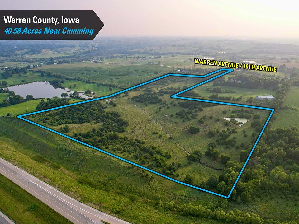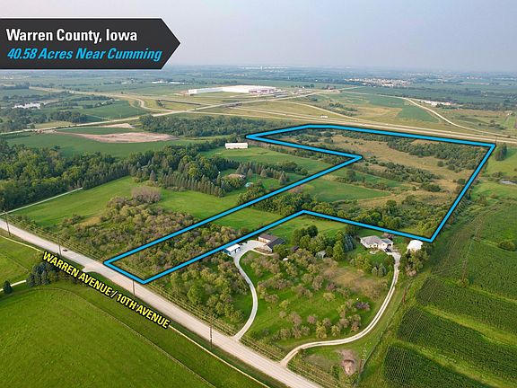 Pleased to present 40.58 acres m/l of highly desirable land just west of Cumming, Iowa, adjacent to Interstate 35 and Cumming Avenue (Hwy G14). This tract lies directly in the path of growth and offers excellent potential with multiple zoning possibilities.