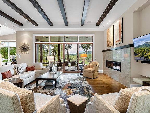 Enjoy elevated mountain living at 10 Water View Court, perfectly situated just off the 4th hole tee of Ben Wright’s celebrated parkland-style course with south-facing mountain & water views. The home’s striking curb appeal, refreshed landscaping, & paver driveway enhance its sophisticated exterior of stone, stucco, & wood. A waterfall & custom iron doors welcome you into a spacious foyer, highlighting the home’s warmth, style, & meticulous craftsmanship. Inside, the great room features a vaulted ceiling with exposed beams & expansive windows framing Blue Ridge Mountain views, blending indoor comfort with outdoor beauty. Step onto the spacious deck to enjoy the water & mountain vistas, complete with an outdoor grill for al fresco dining or relaxation. Back inside, the chef’s kitchen combines thoughtful design with exceptional functionality. The space features a movable island, a Wolf induction cooktop with two gas burners, dual Miele ovens, & two sinks for effortless meal prep. Waterfall-edge countertops, bar seating, & paneled appliances, including a dishwasher, large hidden cabinet, & two refrigerators, maintain a sleek, cohesive look. An “appliance garage” keeps small appliances neatly tucked away, preserving the kitchen’s clean, streamlined aesthetic & the walk-in pantries offer abundant storage & includes a third refrigerator. Just off the entryway, the dining room & kitchen are connected by an adjoining pass-through bar with a sink & wine fridge, while a built-in buffet adds both functionality & elegance to the space. Thoughtfully designed transitions between spaces make entertaining effortless. Adjacent to the kitchen, a casual breakfast area opens to the spacious deck & grilling area. The main-level primary suite serves as a private retreat, bathed in natural light & showcasing beautiful views. It opens directly onto the deck & includes a spa-inspired bathroom with a spacious walk-in shower featuring dual showerheads, a jetted soaking tub, water closet, separate makeup vanity, & expansive his-and-hers walk-in closets. Added convenience comes from direct access from the larger closet to the laundry room, which is equipped with a built-in folding table, sink with jet feature, & new washer & dryer. The oversized three-car garage provides ample space for vehicles & storage, & adding to the home's practicality, a nearby half bath & drop zone ensures an organized transition from the garage, with access to the side yard through the side door out to pea gravel path & greenhouse. A charming powder room & a home office, highlighted by a geometric paneled accent wall & large built-ins, complete the main level with character & charm. Descend via the elevator or admire the striking glass floor accent as you make your way downstairs to the lower level, which unfolds as a thoughtfully designed guest retreat. Sonos amplifiers & ceiling speakers provide rich, immersive sound throughout the main living spaces. In addition to three well-appointed bedrooms & full baths, the expansive living space offers endless possibilities for entertaining. Adjacent to the main living spaces & wet bar, a serene covered deck showcases the stunning view. A newly finished hobby room with hickory floors, located just off the deck, offers added flexibility. With its well-planned layout & design, the lower level is perfect for both relaxing & entertaining. Additional improvements include, Vantage smart light switches, landscape lighting, whole house generator, mini-split in garage, interior paint, & a third garage bay. Ideally positioned to capture its stunning surroundings, this home offers generous indoor & outdoor living spaces, with views that inspire daily. Whether entertaining or simply enjoying the natural beauty, every detail reflects thoughtful design & refined mountain living, all just minutes from The Cliffs Valley clubhouse. A Club membership at The Cliffs is available for purchase with this property giving you access to all seven communities.