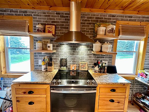 - Kitchen Island, Kitchen/Dining, Kitchen/Living, Living/Dining, Natural Light, Natural Woodwork, Soaking Tub