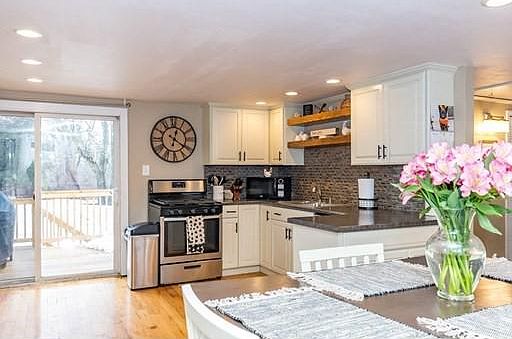 Back on market due to buyers financing. Move right in to this well-maintained and updated ranch located on a dead end street within 1/2 mile of Billerica center and less than a mile to the highway; Spacious kitchen with sliders open to a large deck overlooking a beautiful, fenced backyard. The kitchen is open to the dining room or living room, plus two bedrooms with hardwood floors, and a full bath with tiled shower complete the first floor. The lower level offers a master bedroom and trendy family room with a walk out to patio and custom gazebo with beautiful wall mural. Gazebo has been wired to hang a TV, with a ceiling fan to keep you cool on warm summer nights. This outdoor patio also has a built in bar with lights lining the exterior for late night gatherings. This home checks all the boxes from interior to exterior - come see for yourself!