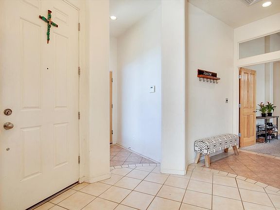 This former model home still shows like a model home! Lovingly maintained and taken care of. Photovoltaic panels for hot water use. Close to neighborhood parks and easy access to anywhere Santa Fe or I-25. A very private back yard accommodates a hot tub for soaking and star gazing. The flexible floor plan allows for many uses and easy entertaining. Beams and vigas, high ceilings, custom tile work orchestrate together to create this perfect home. Seller is actively repairing anything that has come to light while owning the home, once vacant, there will be a fresh coat of paint! It will sparkle.