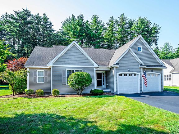 Welcome to Amherst, New Hampshire surrounded by an abundance of natural beauty with a warm and welcoming community feel. The tree lined streets and cheerful sense of community is untouchable here. After entering through the front door you will instantly feel invited and enticed by the homes beautiful and exceptional one level living layout. There is such a carefree light feeling in this amazing 55 plus home. It is beautiful, bright, and meticulously cared for. There is a wide open living room, cathedral ceiling, warm gas fireplace, the dining room has many windows allowing the warm bright sunshine to beam in while you enjoy your meals also giving you a beautiful view of the back yard. The primary bedroom designed to feel like a private retreat there is plenty of sunshine and an ensuite full bathroom with his and her sinks and plenty of space. The second room has beautiful French doors and gleaming hardwood floors it's clean fresh feel meant to welcome your guests to their home away from home. Or it could be used as your home office, a fresh space with soft light ideal for focused work with no distractions. You will also have a spacious two car garage and a lovely outside deck. This home offers a quiet and peaceful lifestyle surrounded by beautiful landscapes. Come experience true maintenance free living. We can not wait to welcome you inside! This is home. Delayed showings starting Friday February 28th Open houses Saturday March 1st 2pm-4pm & Sunday March 2nd 1pm-3pm
