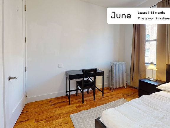 This Queen room in Prospect Lefferts Gardens is available on a 12 month lease or a flexible short term (31 to 364 days) lease. You pick your custom start and end date. Monthly rent rate is determined by furnishing preference, move-in date and move-out date. Speak to a June representative for recommendations on the best stay duration for the lowest rate.