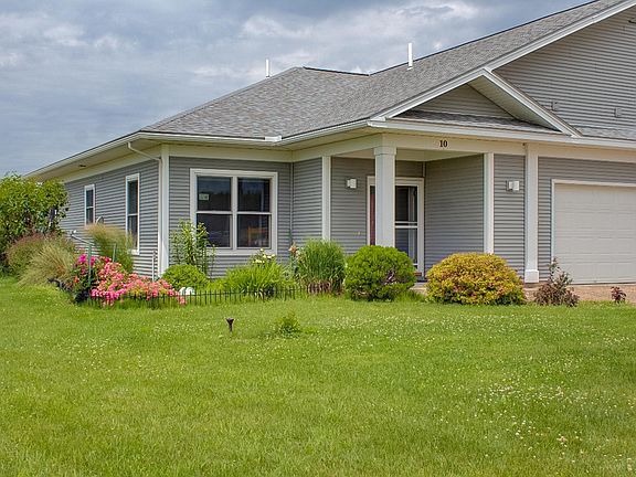 Newly constructed in 2007 this well appointed one level corner condominium with views of Lake Champlain and the Adirondacks and is conveniently located between Plattsburgh, Burlington and Montreal. This unit was built for the original developer and is last corner unit in the neighborhood ensuring privacy on 3 sides of the home with unobstructed views. This well designed home has radiant heat flooring, air conditioning, 9 foot ceilings and views from almost every room. The heart of this home is the open kitchen, dining, and living room. Featuring ceramic tile floors, the upscale modern kitchen has cherry soft closing cabinets and drawers, stainless steel appliances, large pantry, and island making entertaining meal prep and entertaining a joy.The living room features engineered hardwood floors and is framed by large lakeside windows and a no hassle gas fireplace The SW side of the living room has sliders leading to a covered 3 season porch and deck overlooking the West Shore of Grand Isle, perfect for al fresco dining. There are French Doors leading to the primary bedroom with insulated blinds and closet with built in storage and an appealing ensuite 3/4 bath. There is plenty of storage in the insulated/heated oversized one car attached garage with separate utility room (new boiler) as well as an additional 24 x 14 detached one car garage. Enjoy farm to table meals, sunrise paddles, evening bike rides along the shoreline and all that the Champlain Islands lifestyle offers.