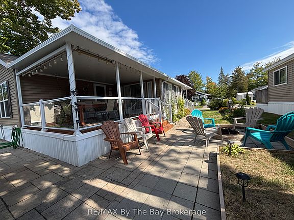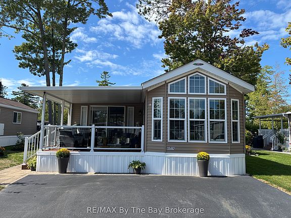 Seasonal Retreat in popular Countrylife Resort. Lots of room for entertaining. Woodland Park Muskoka model is built to the highest standard to keep you comfortable throughout the season. Low maintenance lot with paved 2 car parking. It is ready for your family to start enjoying the summer! large 10x10 Storage shed, 336 sq/ft of covered decks and a 4 season sunroom. Heated with Natural gas. Upgraded 20 Gal hot water tank and built in dishwasher. Resort features pools, splash pad, clubhouse, tennis court, play grounds, mini golf and walking path to the beach. Gated resort w/security. Immediate closing available.