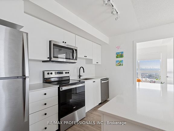 Modern Corner Condo with River Views & Easy Downtown Access! Welcome to your bright, spacious corner suite overlooking the Humber River - where nature and city life meet in perfect balance. This sun-drenched 3-bedroom, 2-bath home offers 1,021 sq. ft. of stylish living space with an airy, open-concept layout that's perfect for both relaxing and entertaining. The modern kitchen flows effortlessly into the living/dining area and out to a private balcony with peaceful river and treetop views. The primary suite feels like a retreat, featuring a walk-in closet, 4-piece ensuite, and tranquil west-facing sunsets. Two additional bedrooms with south and southwest exposure provide flexibility for family, guests, or a home office. Commuting is a dream: the GO Train and UP Express are just steps away, getting you to Union Station or Pearson Airport in minutes. Enjoy quick access to highways, shops, schools, Weston Golf Club, and nearby riverside trails. This newer, full-service building offers everything you need - a rooftop lounge and terrace, large BBQ patio, gym, party room, bike storage, and full wheelchair accessibility. Come experience how easy - and beautiful - urban living can be.(Some photos virtually staged.)