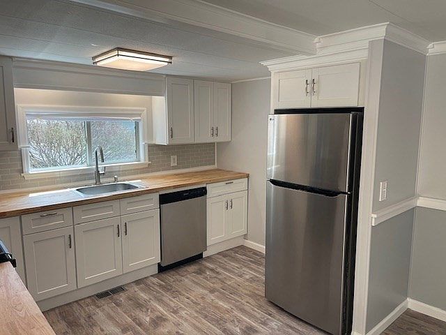 Hurry and schedule your showing for this freshly remodeled 2 bedroom home in the sought after Meadowbrook Acres! Situated in a private part of the 55 + community featuring a beautiful back yard with stunning views of nature. Home features a new slider that brings you to the new deck to enjoy your morning coffee in your private backyard. Enjoy the added bonus of a pellet stove in the living room. Home also features new appliances, newly remodeled bath and kitchen, new flooring, new fixtures, a car port and newer shed.
