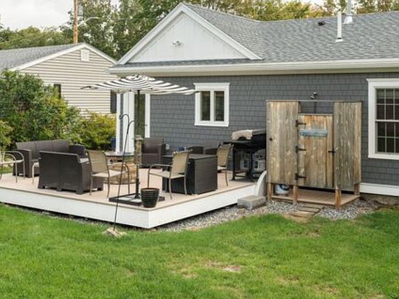This fully furnished beach house located on a quiet dead end street . This 3 year old beautiful single family ranch style home is located about a quarter mile from plaice cove beach and a mile walk to rye beach.