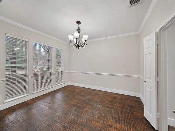 Located in a quiet-cul-de-sac is this pretty two story home convenient to good schools and parks. Home features hand scraped wood floors in most areas down stairs and gorgeous limestone fireplace! Primary suite down with large walk-in closet and en-suite bath with separate tub and shower. Kitchen updates include granite counters, stainless appliance and lease includes washer, dryer and fridge. Just painted throughout including trim and updated vinyl plank floors on stairs and upstairs bedrooms. Looks Great!! Backyard has large flagstone patio. Upstairs are three other bedrooms, so true four bedroom home! Easy access to all roads for commutes - 1488, 242, & I-45!