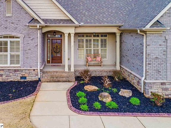 Exceptional craftsman home with backdrop of mountains. Lovely stone and brick at front porch welcome you into the foyer. Hardwood, ceramic tile, stone and granite - everything you would expect in a custom home! Focal stone fireplace sets off the gleaming hardwoods and spacious family room. Dining room boasts trey ceiling and wainscoting. Laundry has sink and plenty of space. The split floor plan offers privacy for owners suite with exquisite jetted tub and separate shower, plus nice walk-in closet. Additional bedrooms tucked nicely on the opposite side. The bonus room could double as another bedroom if additional space is required, or it could be a media or exercise room. Walk in attic storage is plentiful. Plantation shutters throughout. Screened porch in back for those lazy evenings of relaxation and spectacular view of the mountains in the distance. Lovely lawn is fully sprinkled and back yard is completely fenced, with additional yard beyond fenced area. Cul-de-sac home neatly tucked back at the end. Convenient to everything Cherrydale and Downtown Greenville. This neighborhood is blossoming more each day - don't miss the chance to tour this lovely home before it disappears!