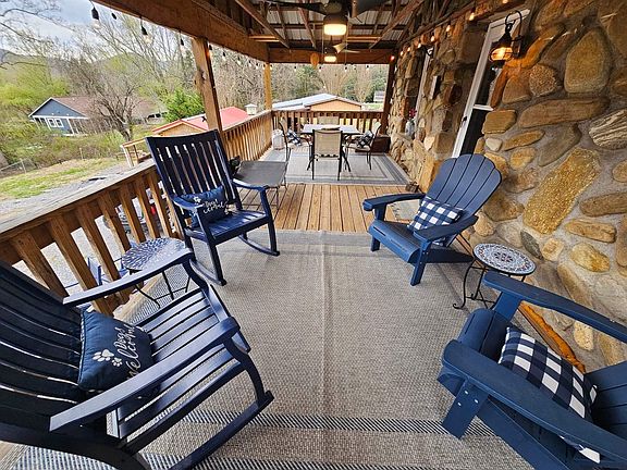 No storm damage and has clean well water! Modern meets mountain for the perfect pet-friendly home! Fully renovated and furnished stone cabin home sits high in the sky minutes (1.25 mile) from charming downtown Black Mountain. With an open floor plan, 2 bedrooms (3 queens) & 1 bathroom you get a cozy getaway, modern amenities & pet-friendly. The house was built in 1976, is heated by oil and has a wood stove. There is a sprawling front deck as well as a cozy firepit in the back. Fully furnished, or the current furnishings can be removed. Includes washer, dryer, microwave, oven, fridge & dishwasher. Window AC units are in the bedroom, living room and utility room. Dog door in the back leads to a fully fenced yard (4 ft chain link). All utilities are included except oil and electricity above $125/month (includes water, sewer, trash, Spectrum internet, electricity (up to $125)). Tenant will be responsible for lawn maintenance all equipment is provided. There is a fully separate apartment below the house that is not part of the rental agreement (used for owner part time). The house is on a shared gravel driveway with 2 other houses at the bottom of the drive. Absolutely no smoking on the property or in the house. Ample parking for cars and/or trailer/RV (no hook ups) and large shed. House has a Sifely door entry system and security cameras. Lease is available for 3-12 months. Full background check required and paid for by applicant. 1 month security deposit (refundable) $500 pet fee deposit per animal $50/month per animal cats and dogs accepted $2300/month $35 application fee students allowed with co-signer Available January 1 Owner pays for electricity (up to $125), sewer, trash, internet (Spectrum), water. Renter pays for oil (for heat). Friendly animals allowed. Absolutely no smoking in and on premises. Tenant is responsible for lawn care (tools provided). Owner sometimes is in downstairs basement apartment (no access between house and basement) and uses a small portion of fenced off yard for their dogs. 3-12 months lease. Students allowed with co-signer.