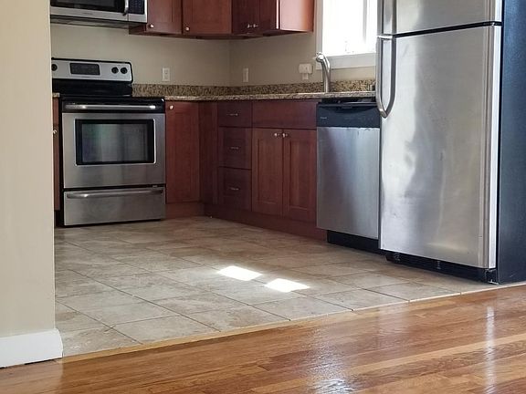 Beautifully restored single family home with 3 bdrms. ,1 full-bath, freshly painted throughout, stainless steel appliances and granite counter tops. House faces east and new slider with deck welcomes abundant west sunshine. Close to schools, shops, library, restaurants, bus lines, Navy base, with quick access to bridge/ highway. 1 year lease. Utilities not included. Cable ready. Oil heat. Electric hot water. Detached garage, under renovation, when complete rent increases by $100/month. (expected finish by July 1, potentially sooner) Lawn care/snow removal tenants responsibility.