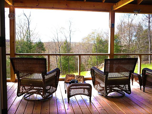 NEWLY RENOVATED CABIN tucked on its hillside perch with CELL SERVICE. Solidly built on 6.99 acres in 2015 on a VERY PRIVATE and GATED seasonal road. This cabin grants three sets of FRENCH DOORS that lead out onto the spacious SCREENED-IN DECK with VIEWS of the valley and SUNSETS. Only a 10 min stroll to 5800 acre BEAVER MEADOW STATE FOREST and SMYRNA LAKE. The cabin is completely off-grid but you'd never know it, with WELL, SEPTIC and 110AMP SOLAR already installed and operating. Living areas are open and bright, bedroom is a good size and offers LOFT STORAGE above. The kitchen has south facing windows and plenty of room to cook and dine. This offering also includes LARGE STORAGE SHED with more space for keeping for quads, kayaks and snow mobiles. Driveway has convenient turn around for campers and AMPLE PARKING SPACE. The land is level and sloping with good drainage and excellent sunlight, lending itself to fantastic homestead gardening. Location also lends itself to making this a great BnB property. Situated 15 minutes from State Route 12B in Sherburne, 25 minutes from Norwich. An hour to Cooperstown Syracuse, and The Finger Lakes Region.