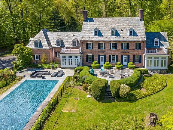 Beautifully restored and impeccably maintained. This 5,176 sq ft (8,750 sq ft by field measure) Stately Georgian Colonial is located on 1.5+ lush acres surrounded by open space with fenced in yard and in-ground heated pool, designed in the late 1930s by famed New York architect William McKnight Bowman. Gourmet MEIK with stainless steel appliances, marble counter tops, a glass enclosed breakfast room opens to a private slate terrace with BBQ. Living room w/fireplace, family room/office w/fireplace, dining room w/fireplace, sun-room w/French doors to private patio.Tranquil Master Suite offers a sitting room, marble bath, WIC, rooftop terrace overlooking mature plantings, there are 3 additional en-suite family bedrooms, rooftop terrace, office, laundry. Third level has 2 bedrooms/full bath perfect for a private office/guest suite. Finished lower level w/stone fireplace, full bath, laundry, steps to pool/patio/cabana, generator. Also for Sale @ $2,575,000