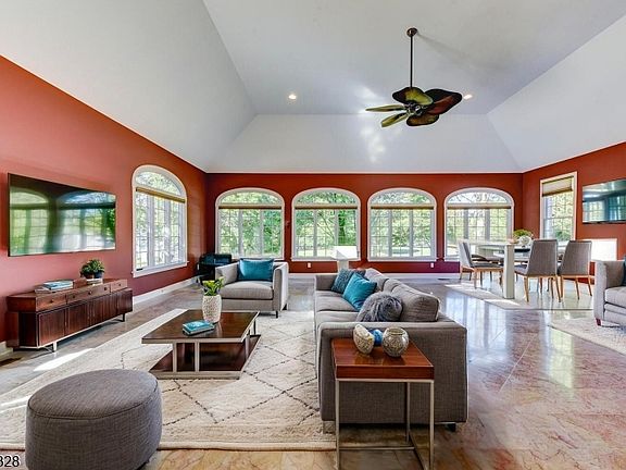 Set on 3.15 acres in a prestigious Toll Brothers community, this commanding colonial exudes timeless architecture and modern refinement, offering an exceptional lifestyle of comfort and elegance. At its heart, a chef's dream kitchen showcases a striking center island, granite surfaces, custom cabinetry with glass accents and a walk-in pantry. Culinary pursuits are elevated by a professional-grade Jenn-Air six-burner gas range with vented hood, double convection ovens, and premium stainless steel appliances. Flowing seamlessly from the kitchen, a dramatic two-story great room features a soaring wall of windows and a brick fireplace enhanced by a pellet stove, creating the perfect gathering place. The extraordinary 30x30 conservatory, bathed in natural light from three walls of windows, offers a captivating setting for celebrations or quiet afternoons. Formal Living & Dining Rooms w/ tray ceilings & a private study add elegance & versatility. Upstairs, the expansive primary suite is a private sanctuary with a sitting area, three walk-in closets and a spa-like bath with a frameless glass shower, while secondary bedrooms share a refreshed hall bath. Throughout, gleaming hardwood floors, 2 new energy-efficient Trane HVAC systems, a 2014 50-year roof and a 1,000 sq. ft. synthetic deck ensure lasting quality. Added value awaits with a lower level already primed to become an extraordinary extension of the living space. A home of presence, refinement and opportunity unlike any other.