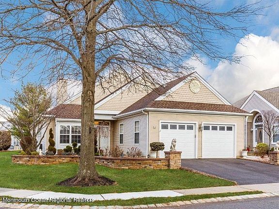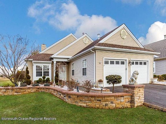 Gorgeous POND VIEW premium lot! This 2 bed 2bath Wellington w office and sunroom has a Newer Roof, AC and Furnace. Its STUNNING newly remodeled kitchen has 42'' premium cabinets with quartz countertops, custom backsplash, ss appliances, built-in microwave and even an overstove faucet for the serious cook! There's a lovely sunroom that brings in lots of natural sunlight and has perfect views! The living room and dining room have gleaming HW floors and a 3 sided gas fireplace also shared w FR. Master Suite has custom closets, m bath has dbl sinks, shower and relaxing tub. This home has also been updated with all new outdoor hardscape lighting; located on a cul de sac and in walking distance to the clubhouse. Renaissance, a favorite 55+ community in Ocean County!