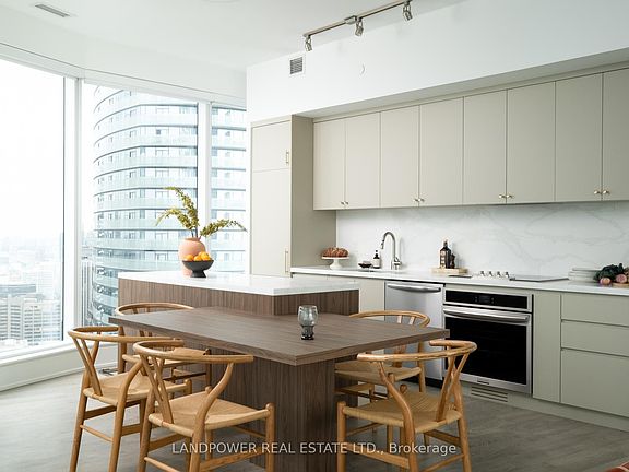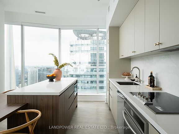 Signature Luxury Residence at Ten York by Tridel! Soaring high above Torontos iconic waterfront, this 3-bedroom, 2.5-bathroom end-unit offers an unparalleled combination of space, design, and breathtaking views. Spanning approximately 1,305 sq. ft. of meticulously planned living space, this home captures panoramic, unobstructed views of the CN Tower and Lake Ontario through expansive floor-to-ceiling windows, sitting 6 meters ABOVE future development Q Tower's roof at ~197 meters. Minimal views obstructed. Step inside and be welcomed by 10-ft ceilings that amplify the sense of openness and light, creating a grand and airy atmosphere. The fully renovated chefs kitchen is a standout feature, complete with an added custom island for extra counter space and custom cabinetry, seamlessly integrating into the open-concept living and dining area perfect for entertaining. Elegant lighting fixtures, high-end finishes, and thoughtful design touches elevate every corner of this home. Each of the three bedrooms is generously sized, with the primary suite offering a spa-like ensuite and incredible views youll never tire of. This unit also comes with TWO premium parking spaces and a private locker a rare and highly coveted combination in the downtown core, ensuring both comfort and practicality for modern city living. Residents of Ten York have access world-class amenities that includes a fully equipped fitness centre, outdoor pool, sauna room, spin studio, yoga room, sun deck, guest suites, and 24-hour concierge. Located steps from Union Station, Scotiabank Arena, Rogers Centre, Ripleys Aquarium, the CN Tower, the Financial District, and Torontos waterfront promenade, this is the pinnacle of urban living. From fine dining and entertainment to everyday conveniences, everything is right at your doorstep. This is more than a home it's a statement of success and style, offering unmatched luxury, convenience, and prestige in one of Torontos most sought-after addresses.
