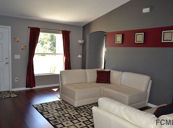 Get close to the fastest growing area in Palm Coast in this immaculate 3/2/2 home that also includes a roomy office/den. Located an easy ride from the new Town Center, this 1,803 LSF home is ready to move into and looks hardly lived in. It's located on a cul-de-sac in a family friendly neighborhood and features beautiful dark cherry laminate flooring that adds to the rich look of the house. Volume ceilings and spacious rooms give this split plan home today's popular open look and feel. Your modern kitchen is open to the family room and includes an eat-in nook and smudge proof stainless steel appliances. The home features a separate LR, Dr, FR & office plus the whole family will love the spacious screened lanai overlooking a large reserved area. There's even storm shutters for the windows! RT 100 is nearby for a quick ride to the beach, shopping or I95. This is a great value for any buyer, it's move-in ready and looks like it was just built so come see this beautiful home for yourself!
