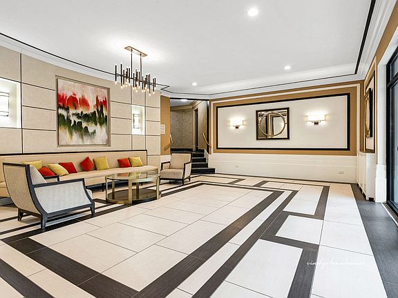 The spacious open-concept living and dining area features rich hardwood floors, crown molding, and abundant natural light, creating an inviting space for both entertaining and relaxing. The renovated kitchen offers white Shaker cabinetry with brass hardware, quartz countertops, a subway tile backsplash, and a full suite of stainless steel appliances, including a gas range and dishwasher. A breakfast peninsula provides additional storage and seamlessly connects the kitchen to the living area. The large bedroom easily accommodates a king-sized bed and includes space for a home office setup, offering both functionality and comfort. The updated bathroom completes the home with floor-to-ceiling marble-style tile, a floating wood vanity, matte black fixtures, and a glass-enclosed shower with rainfall and handheld showerheadscreating a refined, spa-like retreat.