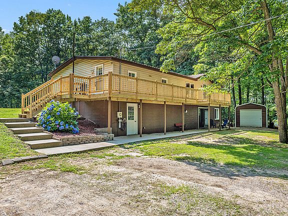 Back on the market through no fault of its own, buyer could not fulfill contingency. Never before on the MLS, this one owner home shows pride of ownership. Main floor features an updated kitchen, two dining areas, a large living area complete with pellet stove, and primary bedroom with en suite. Located on a paved road with 12.88 acres, much of which is wooded, this property offers the perfect blend of tranquility and convenience. As a bonus, the partially finished walkout basement is perfect for future expansion. Additional features include a metal roof, newer furnace & water heater, 220 electrical, generator hookup, and 2 carports for storage. This home is truly a rare and exceptional find. Sq ft based on township info and seller measurements. Buyer and buyers agent to verify all info