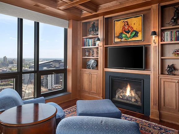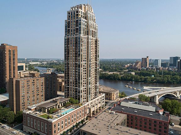 Carlyle 3202 is a stunning, rarely available upper floor unit style. With only 3 other units on the floor, this home of 3,368 square feet offers a complete lifestyle- numerous upgrades and show-stopping views of the Mississippi River and Stone Arch Bridge. From the circular entry foyer, your home offers a showcase for art and views. Beautiful living room opens to a balcony, perfect for summer fireworks viewing. A sophisticated paneled office/den with box-beam ceiling and gas fireplace is perfect for work while gazing down the Mississippi. Formal dining room dazzles when entertaining guests. The heart of the home, the kitchen/family room is open and spacious. Brand new Wolf/Sub Zero appliances were just installed. A great informal dining area overlooks the river. A second balcony offers natural gas line for a grill. Primary bedroom suite looks West up the Mississippi River, and includes a large closet, heated floors, and powered shades. A second bedroom en-suite is spacious with 3/4 bath and walk-in-closet. A third room can serve as 2nd office/craft/exercise room. Custom built-ins add storage in the laundry room. A second entrance offers a true mudroom. So many upgrades including cove and tray ceiling details added; extensive custom cabinetry and built-ins; extensive art lighting; lighting and AV control system; supplemental in-floor heating; powered shades; and more. Sale includes 2 adjacent parking spaces on flat portion of ramp; plus a rare 1-car 300sf private garage; and 1 private 66sf storage room. Come see for yourself all that this residence, and The Carlyle, have to offer.