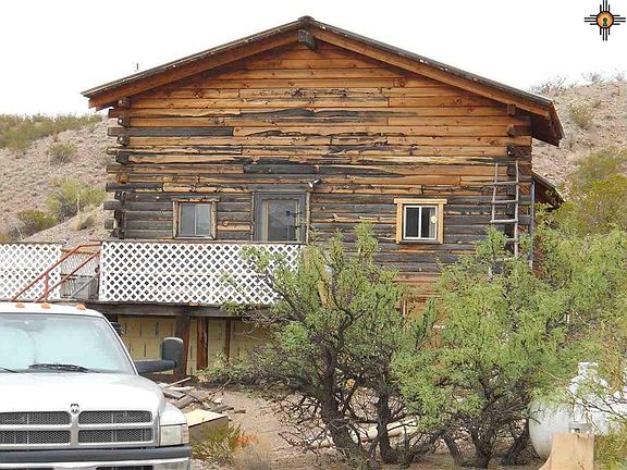 Welcoming log home in Alamosa Village on 5 acres. This home provides an open concept design; kitchen is elevated, looking out upon a combination living/dining.den area. A spiral staircase takes you up to the open upper level loft bedroom which includes a 1/2 bath and a window. Basement provides ample storage and a freezer. Domestic water well needs new pump.