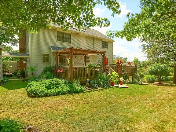 Step into this move in ready home on a spectacular lot. This 4 bedroom home features spacious main level wtih formal living room that's open to the dining room. Spacious eat in kitchen has island, granite counter tops sliding door to private deck and eat in area. Off the kitchen you'll find the laundry room and also the family room with brick fireplace focal point. Upstairs has 4 large bedrooms including master suite with walk in closet, soaking tub, dual vanities and shower. Basement is finished with separate theater area, workout room and entertaining space. Outside you'll find a gardeners paradise. Deck complete with pergola, two more patios/entertaining areas, tons of established landscaping and entrance to the 2nd double car garage. Tons of parking with 4 garage spaces and 10+ off street parking spots. Don't miss this one of a kind home!